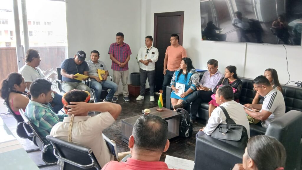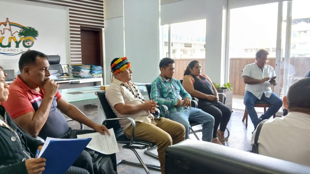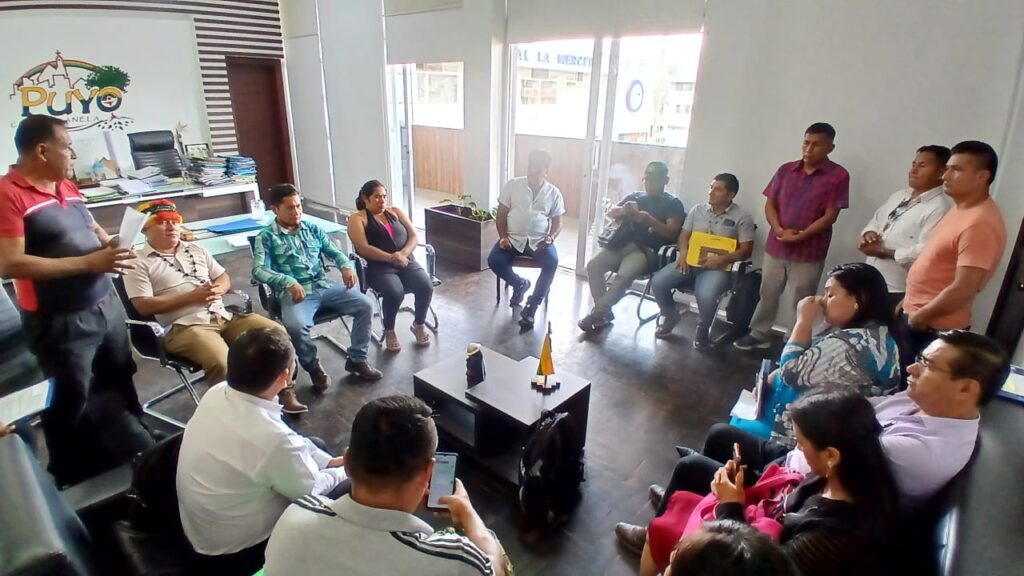 La mañana del lunes 23 de febrero de 2026, el Consejo de Gobierno de la FENASH-P, liderado por su presidente, Lcdo. Mesías Moncayo, junto a delegaciones de cuatro comunidades shuar de la ONASHPAE, mantuvo una reunión de trabajo con el alcalde del cantón Pastaza, Germán Flores Meza, con el propósito de respaldar y fortalecer las gestiones impulsadas por los síndicos en beneficio de sus comunidades y asegurar el cumplimiento de los compromisos asumidos.