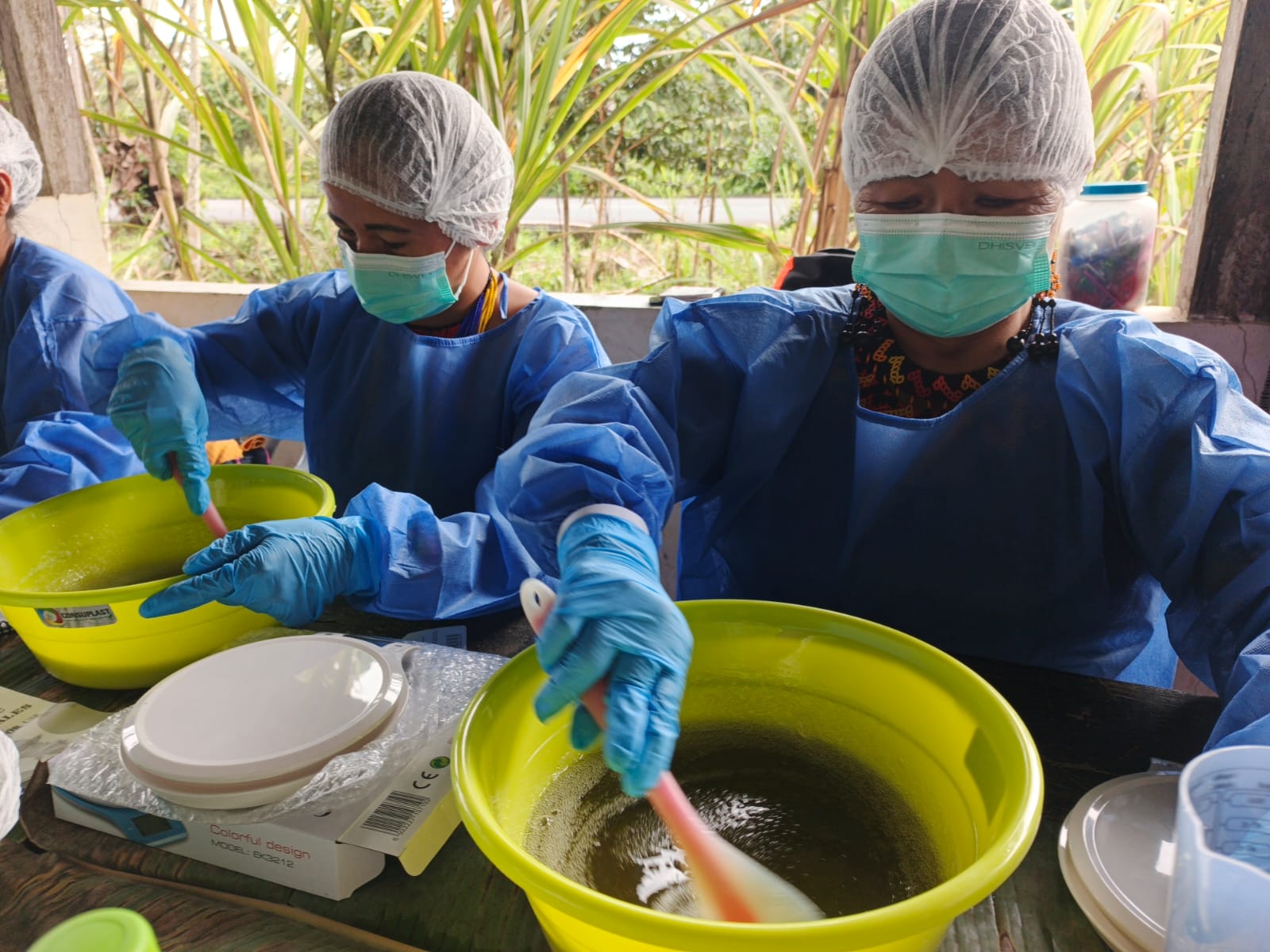 Durante la jornada, las mujeres aprendieron a elaborar shampoo, crema corporal, jabón íntimo y jabones artesanales, utilizando plantas del territorio, como parte de un proceso que revaloriza los saberes ancestrales y promueve el uso sostenible de los recursos naturales.